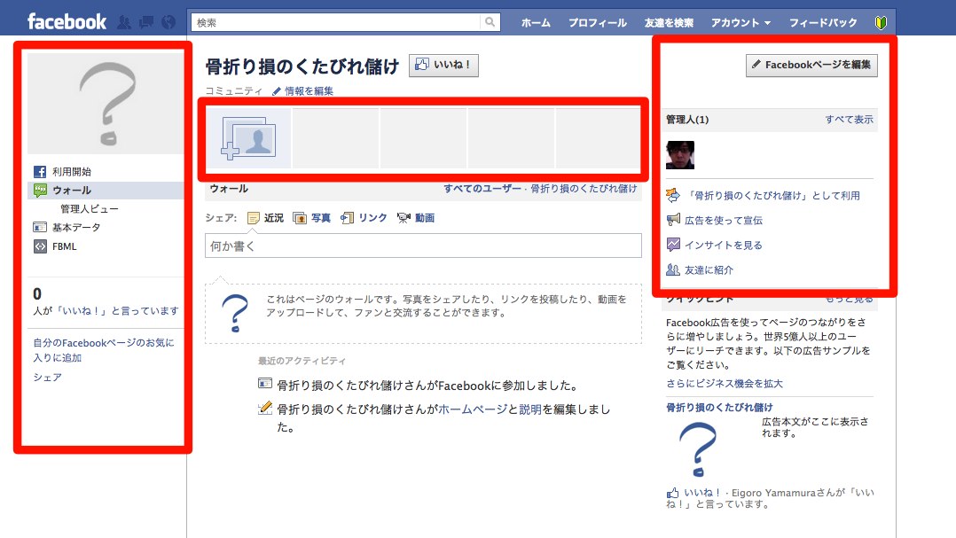 これがアップグレード後のFacebookページ(管理者向け)です。