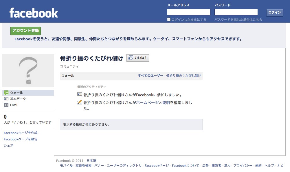 こっちはアップグレード前のFacebookページ