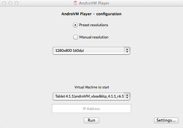 Android VM Player を経由して Virtual Box の Android を起動することで
